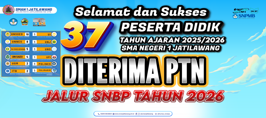 Jatilawang – Kabar membanggakan kembali datang dari SMA Negeri 1 Jatilawang. Sebanyak 37 peserta didik Tahun Ajaran 2025/2026 berhasil diterima di berbagai Per